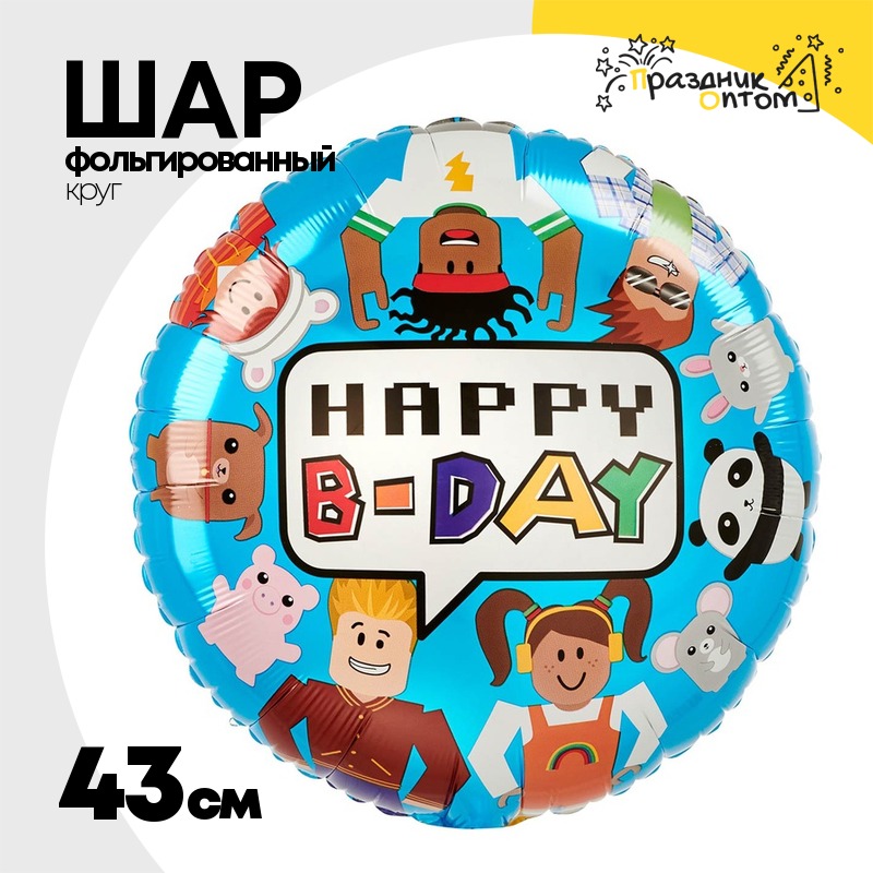 Шар Фольгированный Party Блоки Виртуальный мир (Голубой)