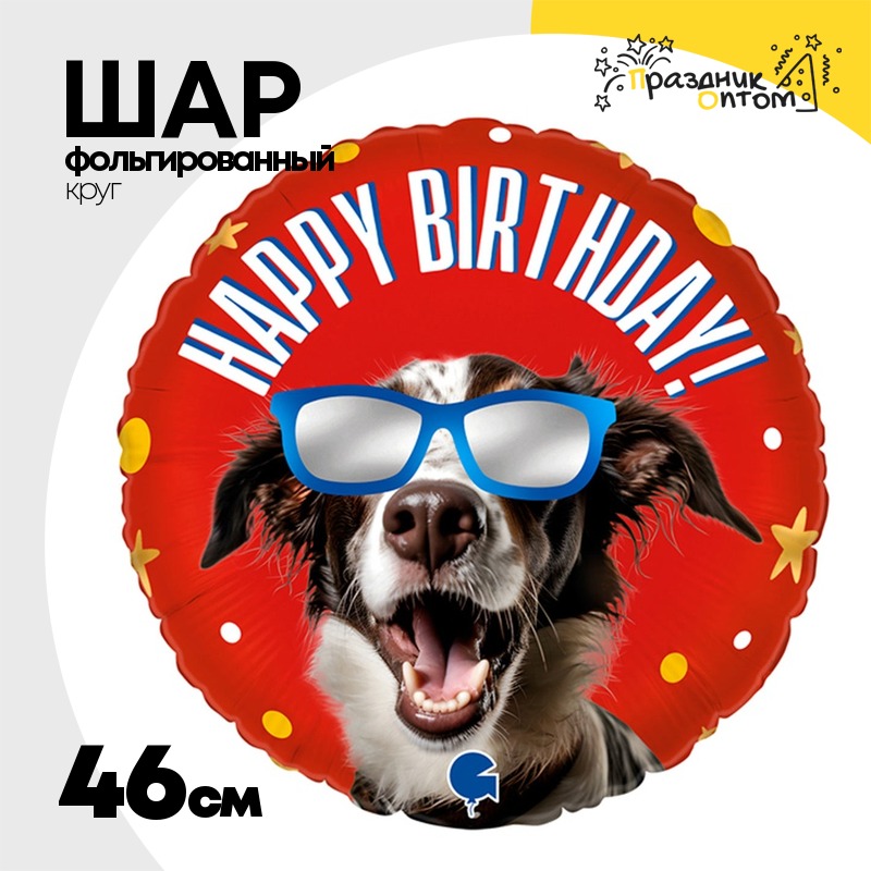 Шар Фольгированный Песик в очках (Красный)