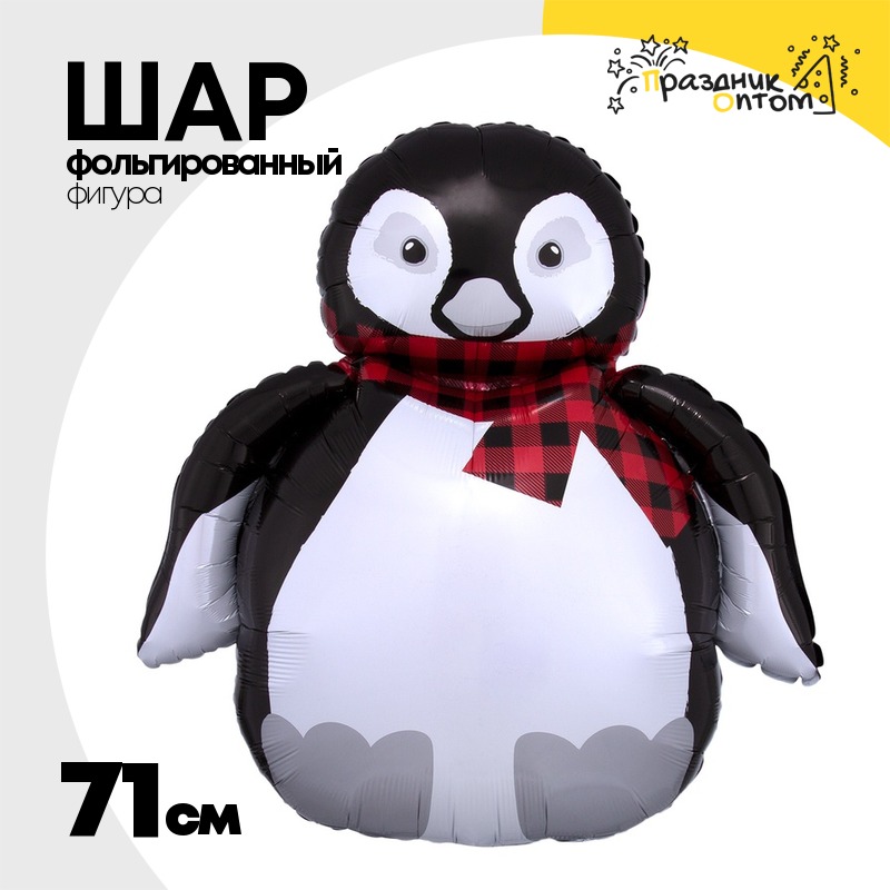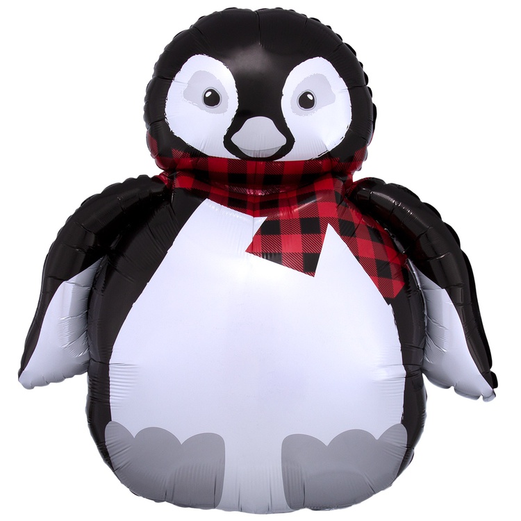 Шар Фольгированный Пингвин в клетчатом шарфе (Черный)