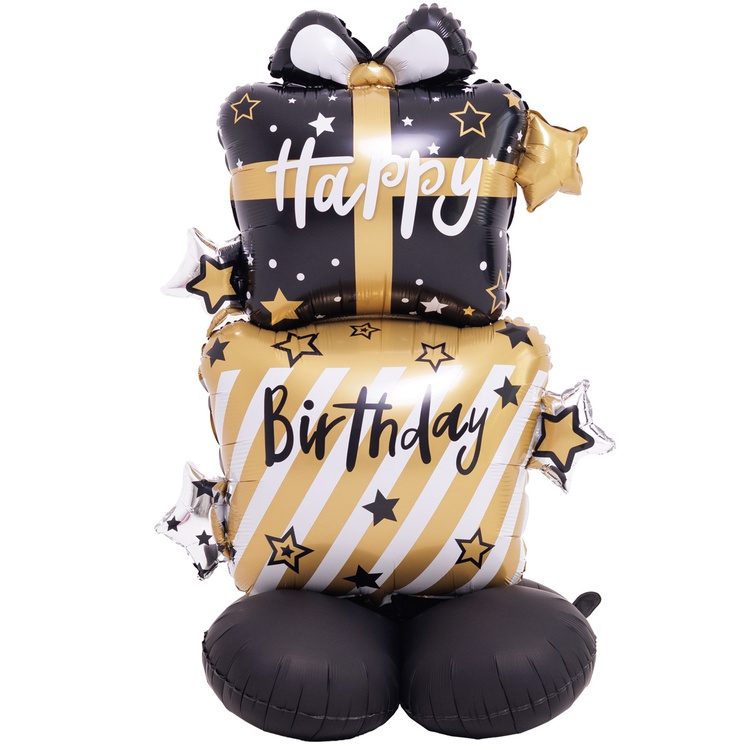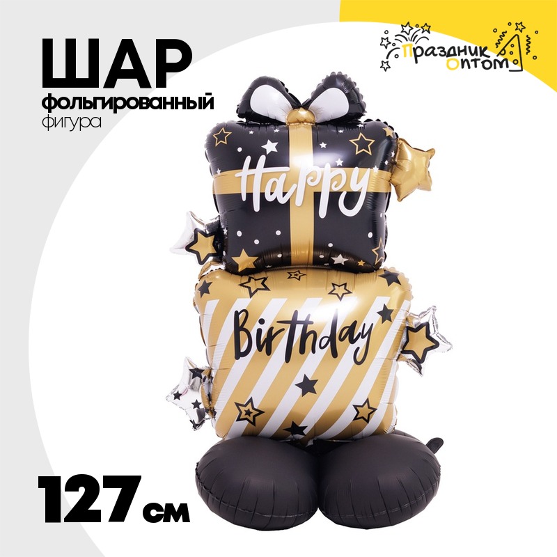 Шар Фольгированный Подарок черно-золотой (Черный)