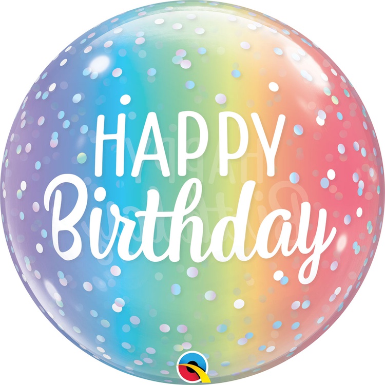 Шар Фольгированный Радуга Омбре горошек Bubble Прозрачный (Ассорти)
