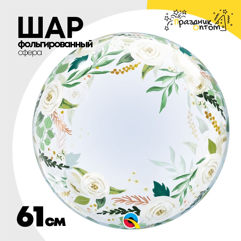 Шар Фольгированный Розы белые Bubble Прозрачный (Зеленый)
