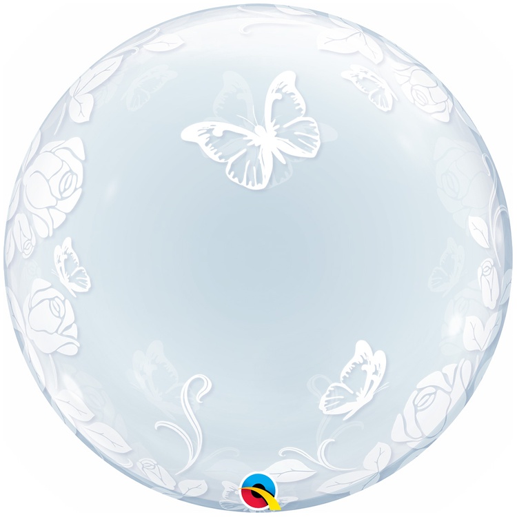 Шар Фольгированный Розы изящные и бабочки Bubble Прозрачный (Персиковый)