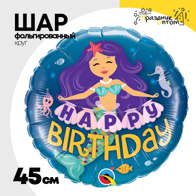 Шар Фольгированный Русалка фиолетовые волосы (Синий)