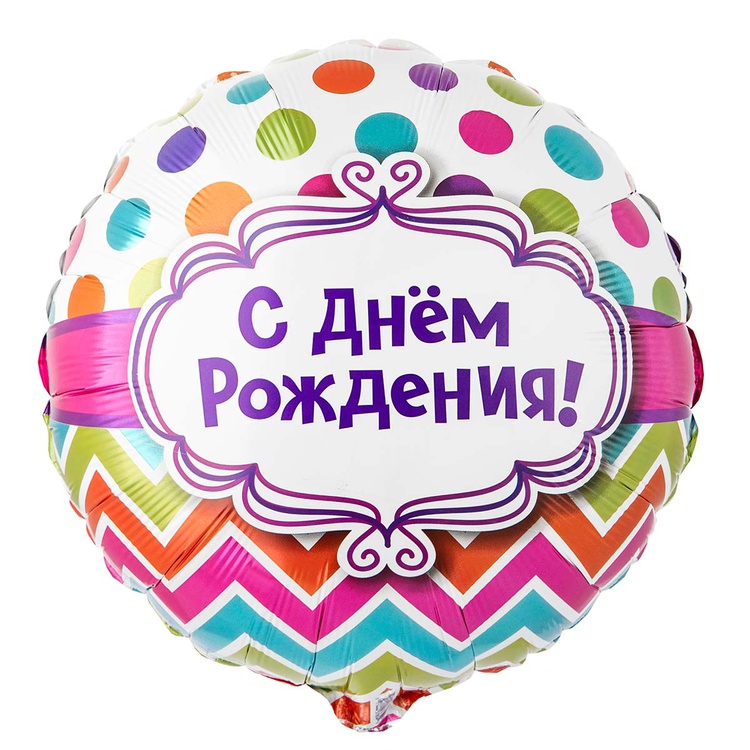 Шар Фольгированный С ДНЕМ РОЖДЕНИЯ горох шеврон (Ассорти)