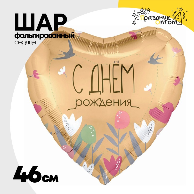 Шар Фольгированный С Цветы и ласточки (Ассорти)