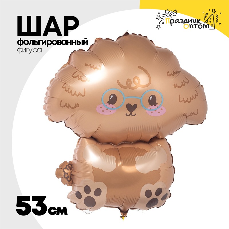 Шар Фольгированный Щенок Пудель милый (Коричневый)