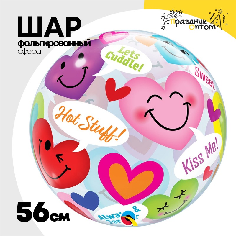Шар Фольгированный Сердца смайлы Bubble Прозрачный (Ассорти)