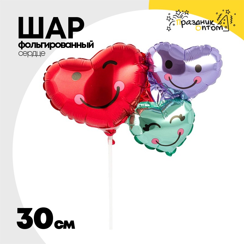 Шар Фольгированный Сердца улыбающиеся трио (Красный)