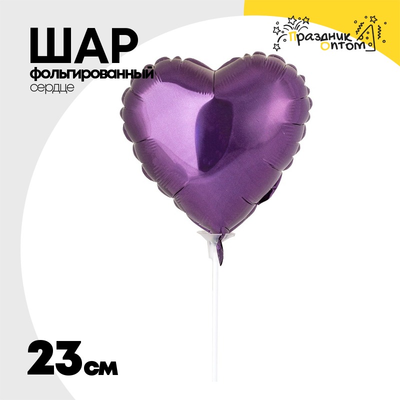 Шар фольгированный Сердце 23 см (Фиолетовый)
