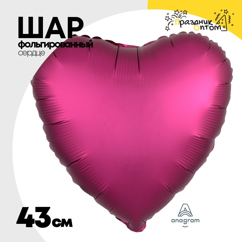 Шар фольгированный Сердце 43 см (Бургундия)