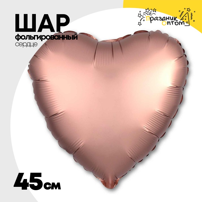 Шар фольгированный Сердце 45 см (Розовое Золото)