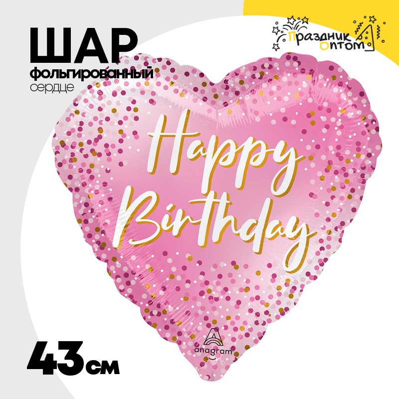 Шар Фольгированный Сердце розовое с конфетти (Розовый)