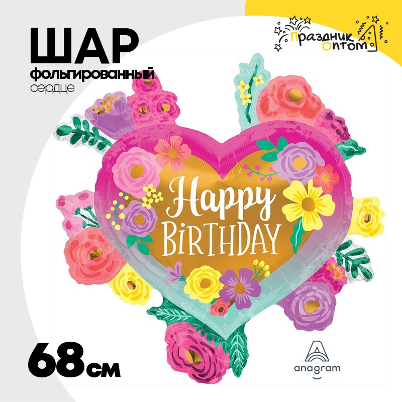 Шар Фольгированный Сердце с цветами яркое (Ассорти)