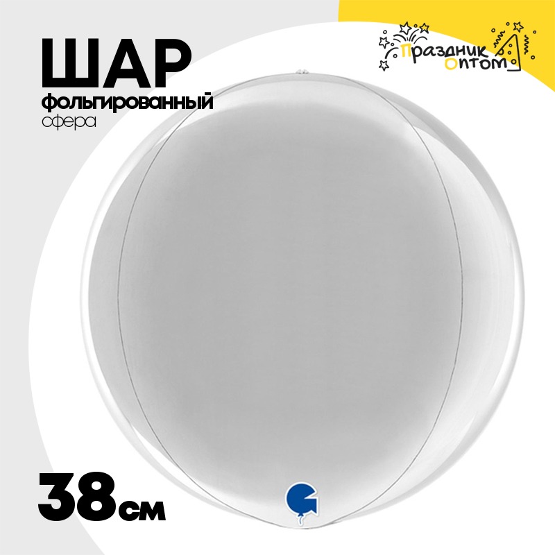 Шар фольгированный Сфера 3D 38 см (Серебряный)