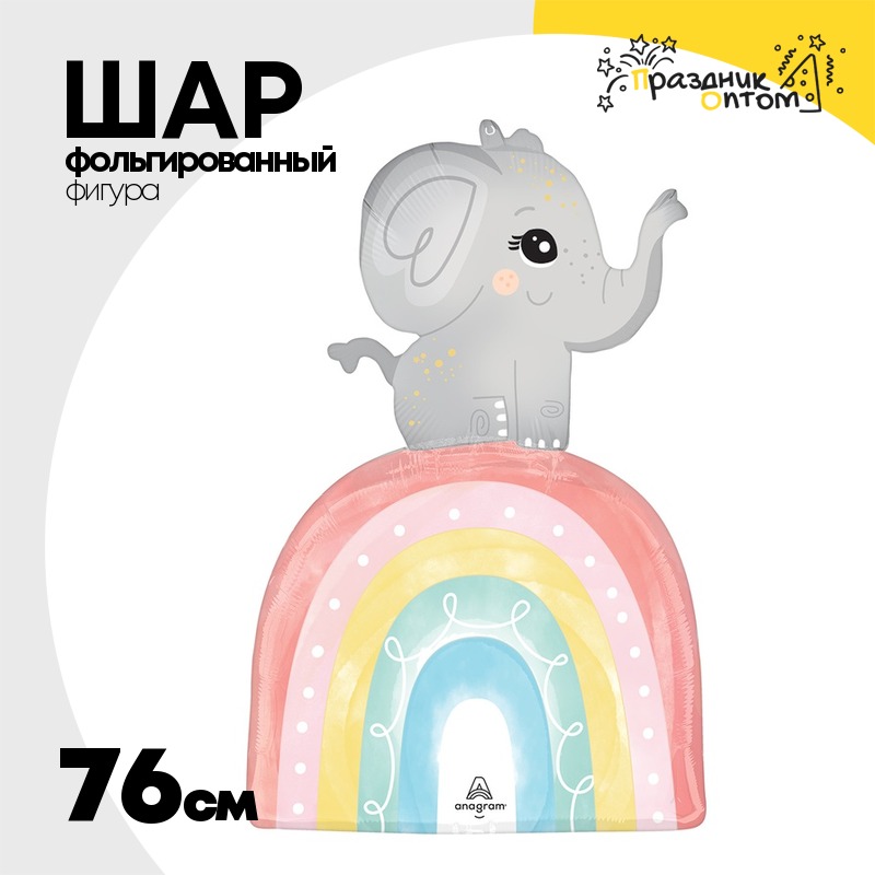 Шар Фольгированный Слоненок Радуга сатин (Ассорти)