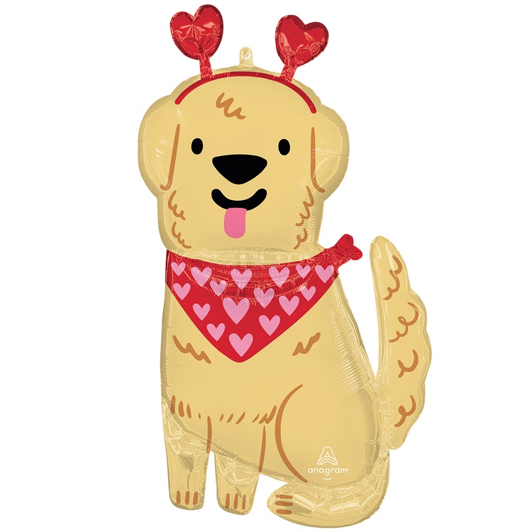 Шар Фольгированный Собака с сердцами-антенками (Желтый)