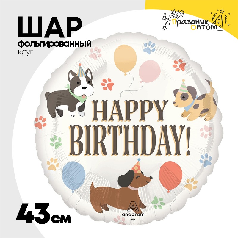 Шар Фольгированный Собаки в колпаках (Белый)