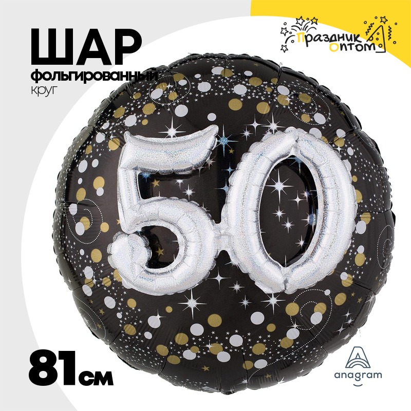 Шар Фольгированный Sparkling Birthd 50 (Черный)