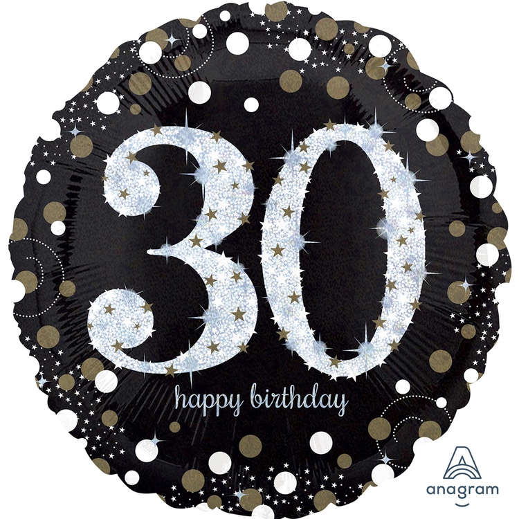 Шар Фольгированный Sparkling Birthday 30 (Черный)