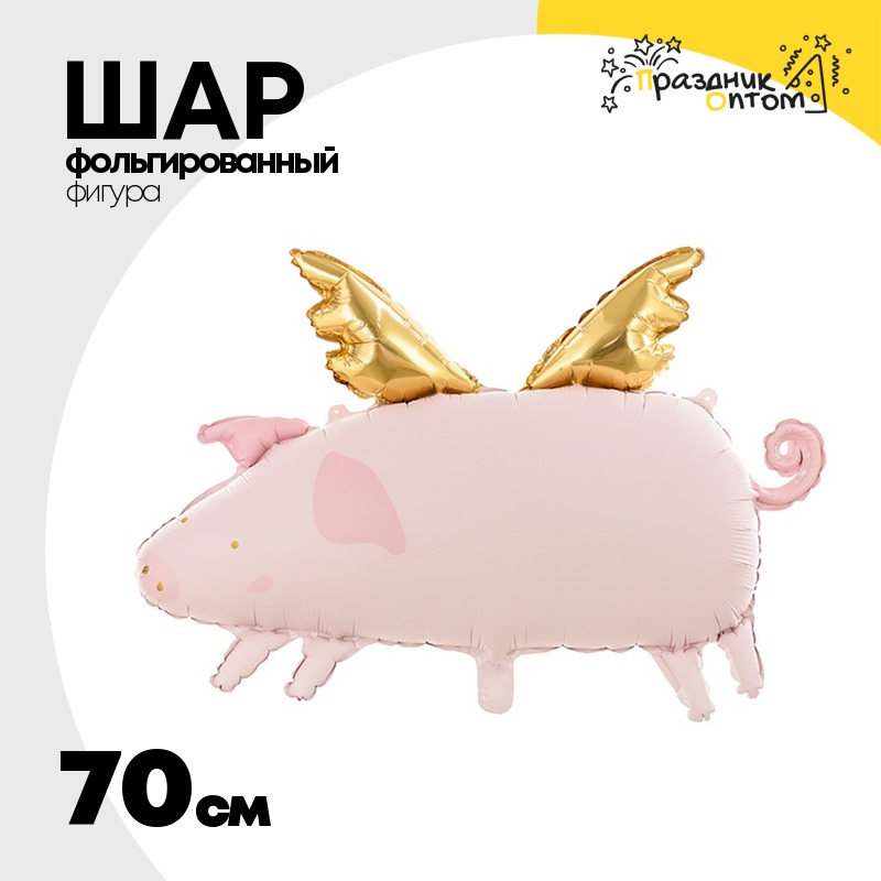 Шар Фольгированный Свинка с крыльями (Розовый)