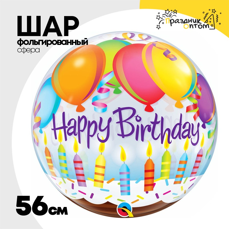Шар Фольгированный Торт со свечками Шары Bubble Прозрачный (Ассорти)