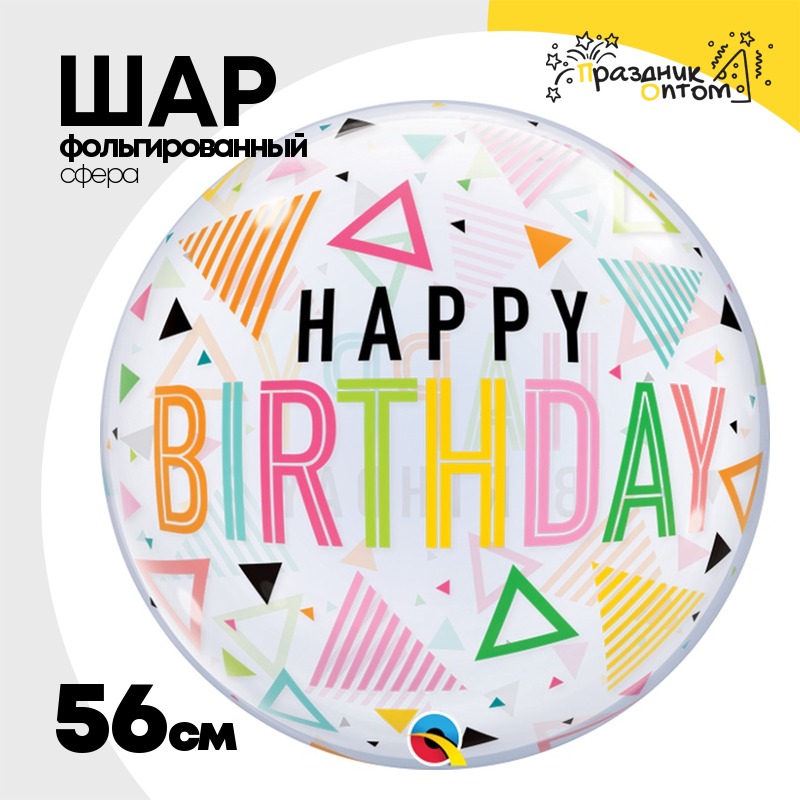 Шар Фольгированный Треугольники разноцветн Bubble Прозрачный (Ассорти)