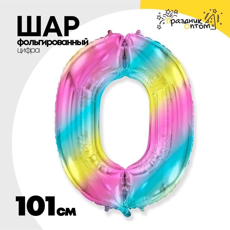 Шар фольгированный Цифра 0 101 см (Ассорти)