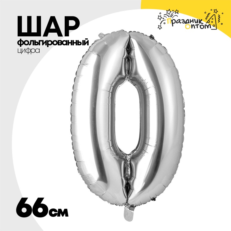 Шар фольгированный Цифра 0 66 см (Серебряный)