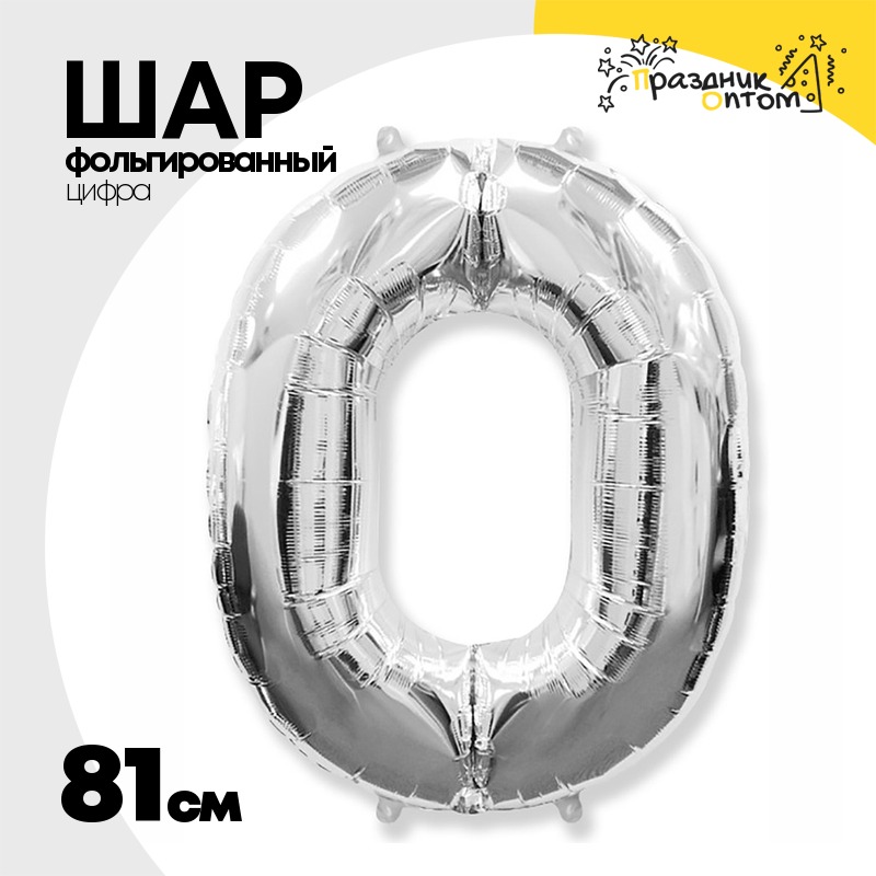 Шар фольгированный Цифра 0 81 см (Серебряный)