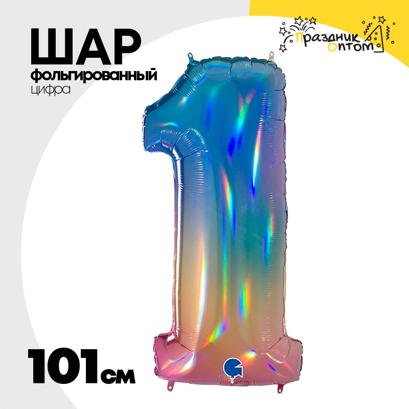 Шар фольгированный Цифра 1 101 см (Ассорти)