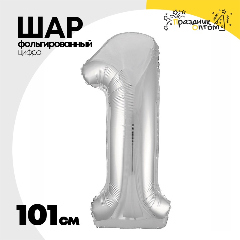 Шар фольгированный Цифра 1 101 см (Серебряный)