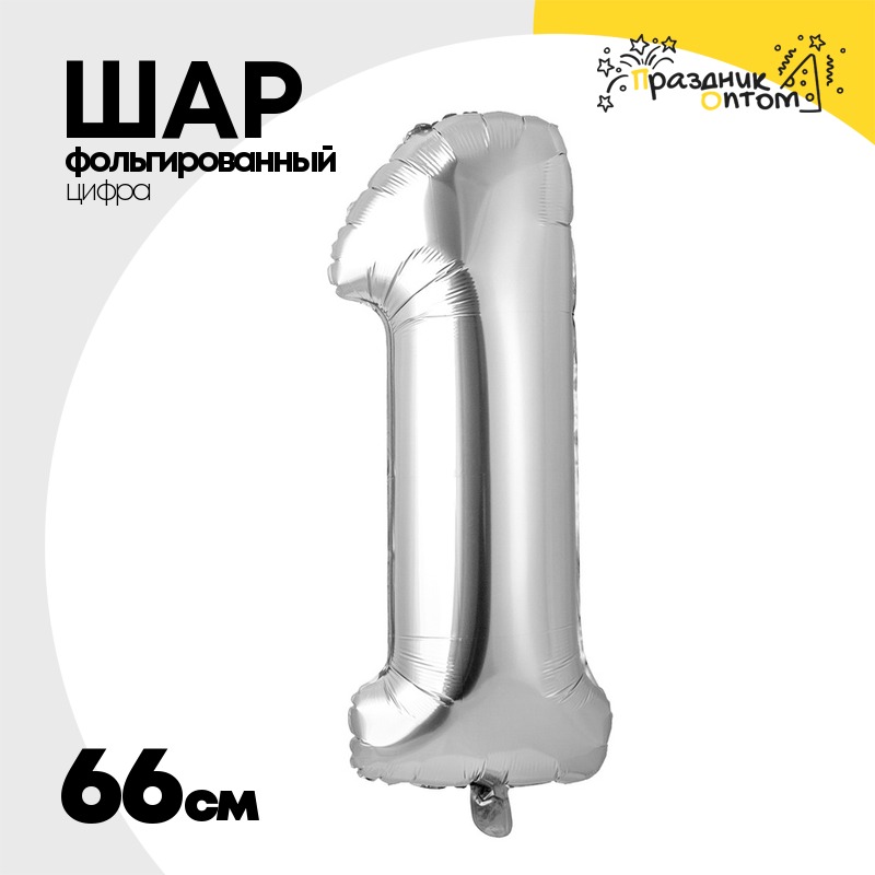 Шар фольгированный Цифра 1 66 см (Серебряный)