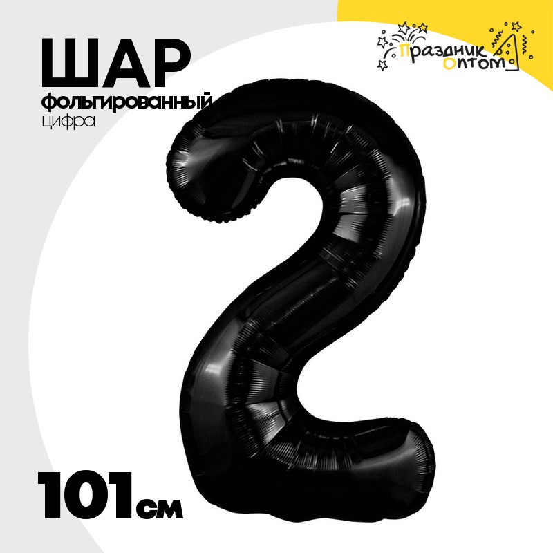 Шар фольгированный Цифра 2 101 см (Черный)