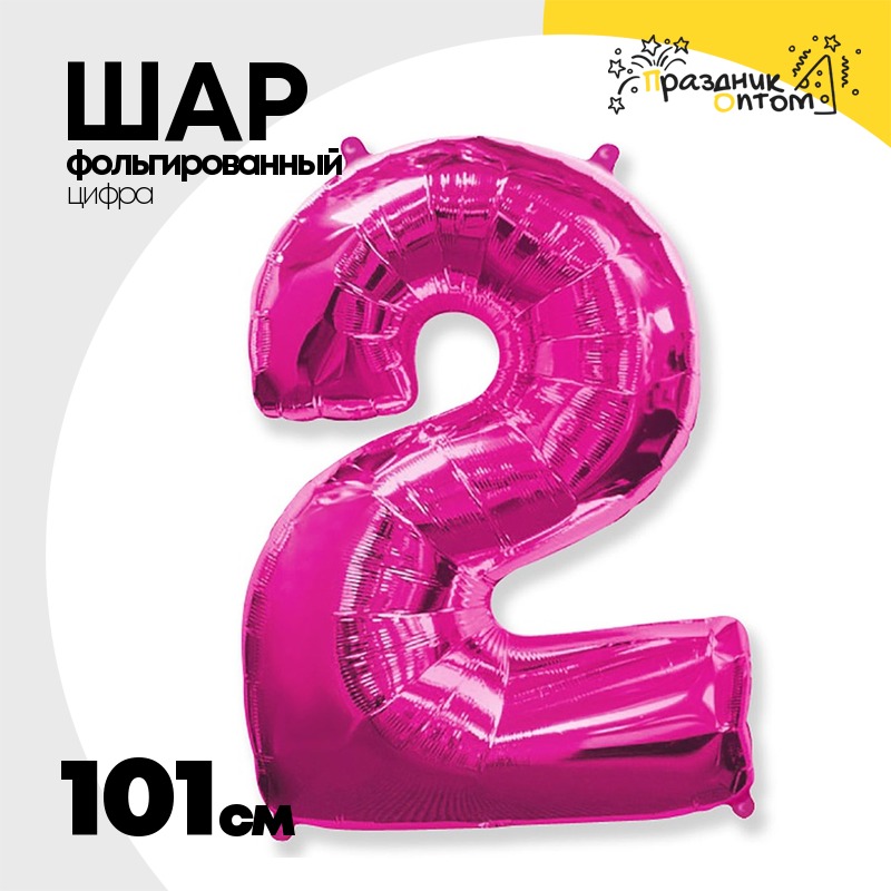 Шар фольгированный Цифра 2 101 см (Фуксия)