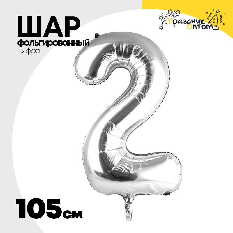 Шар фольгированный Цифра 2 105 см (Серебряный)