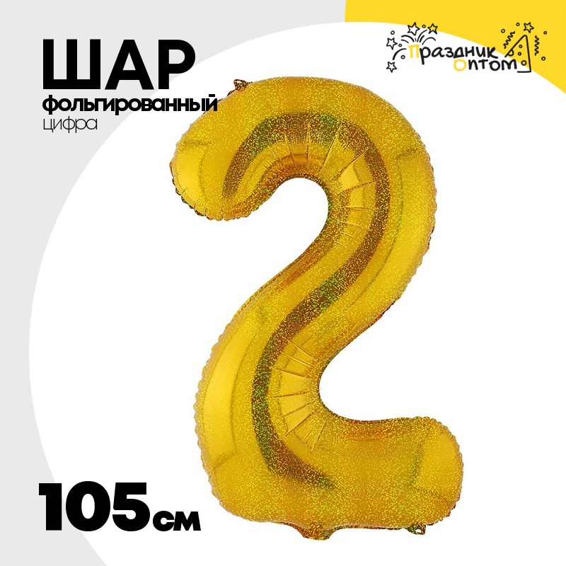 Шар фольгированный Цифра 2 105 см (Золотой)