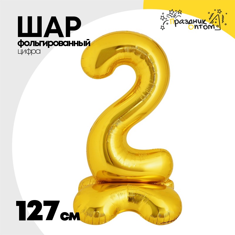 Шар фольгированный Цифра 2 127 см (Золотой)