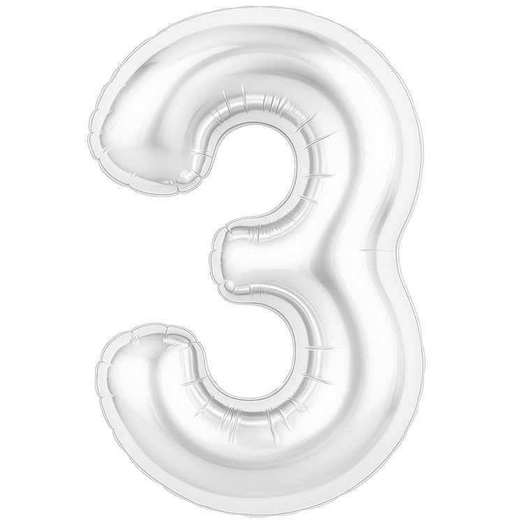 Шар фольгированный Цифра 3 101 см (Белый)