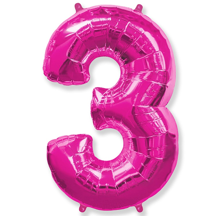 Шар фольгированный Цифра 3 101 см (Фуксия)
