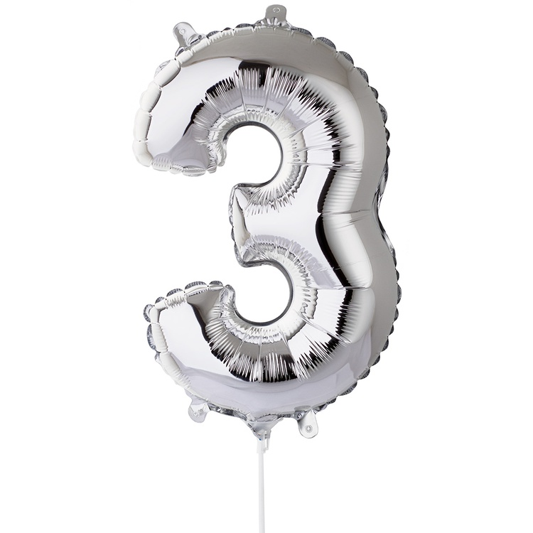 Шар фольгированный Цифра 3 40 см (Серебряный)