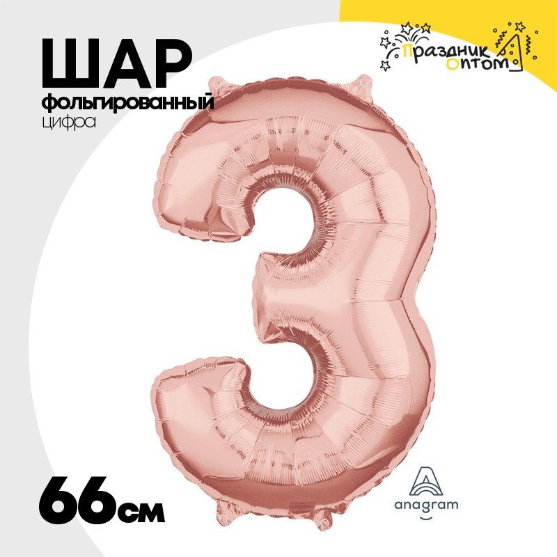 Шар фольгированный Цифра 3 66 см (Розовое Золото)