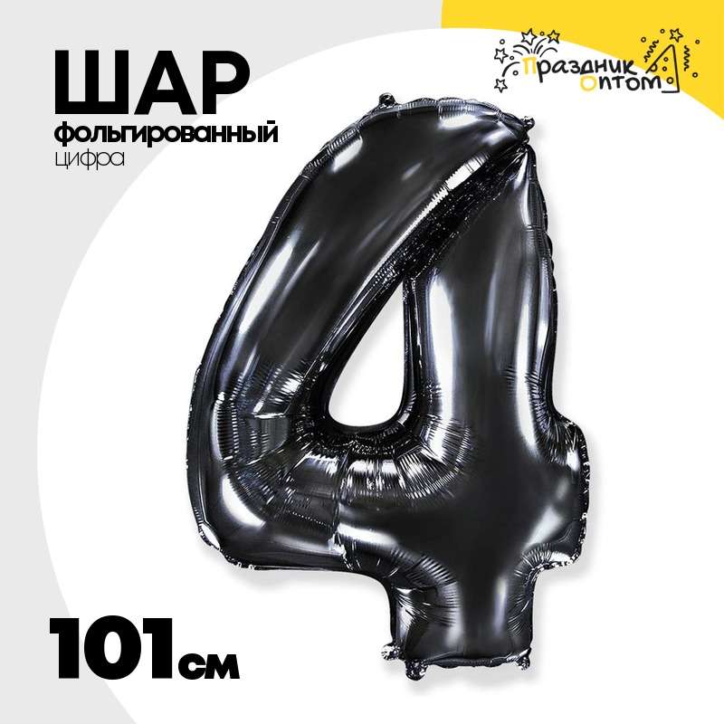 Шар фольгированный Цифра 4 101 см (Черный)