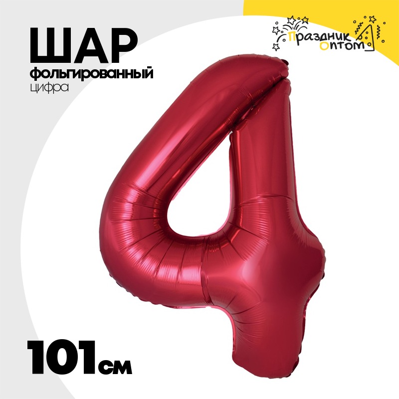 Шар фольгированный Цифра 4 101 см (Красный)