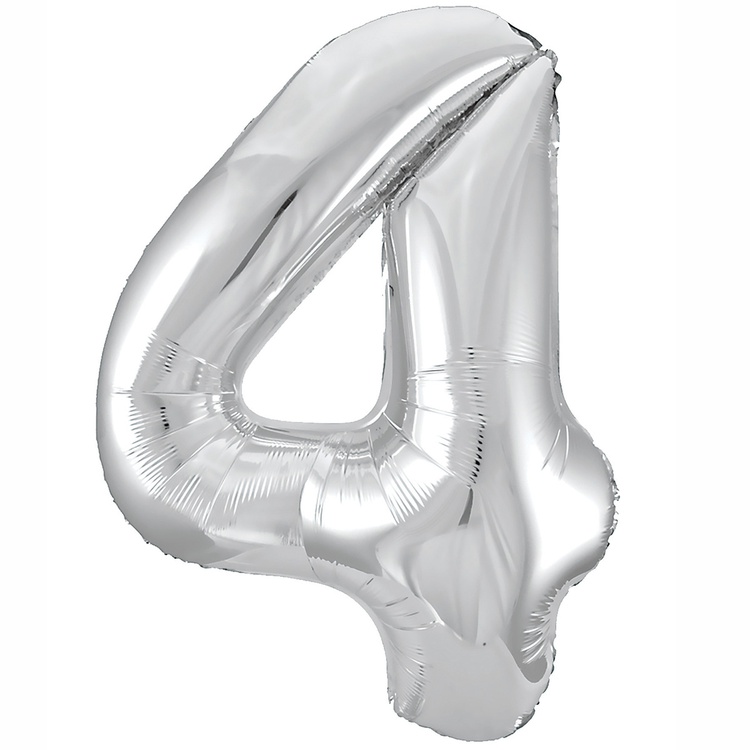 Шар фольгированный Цифра 4 101 см (Серебряный)