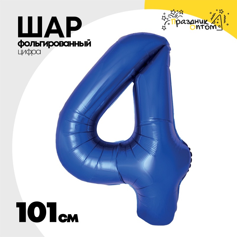 Шар фольгированный Цифра 4 101 см (Синий)