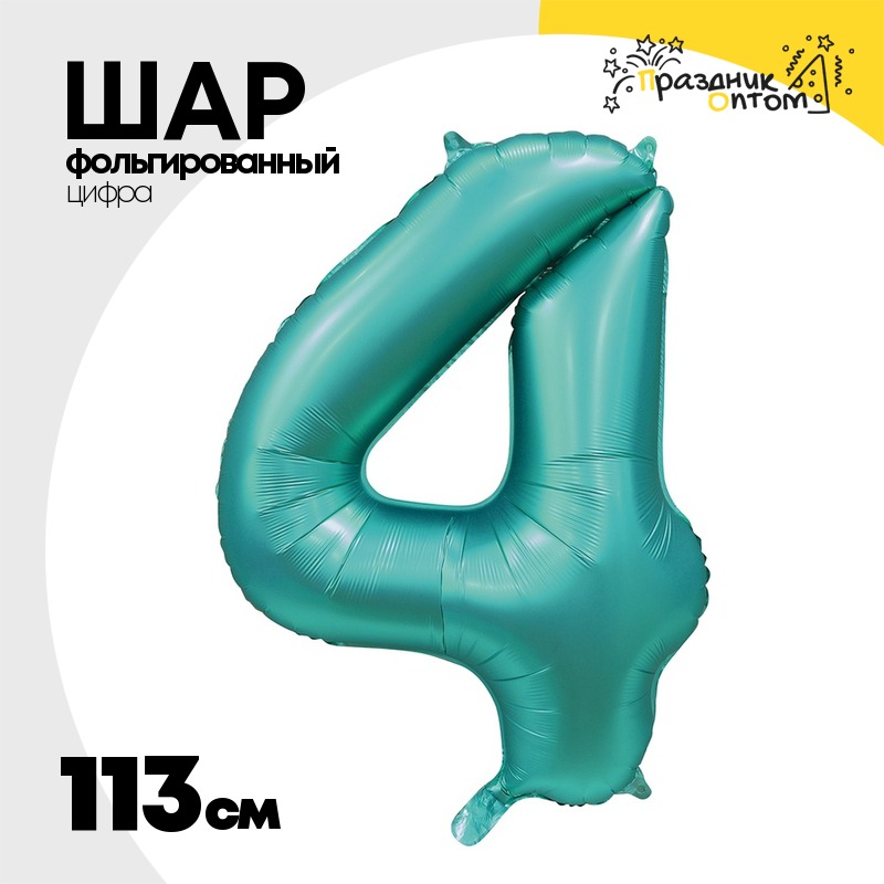 Шар фольгированный Цифра 4 113 см (Сине-Зелёный)