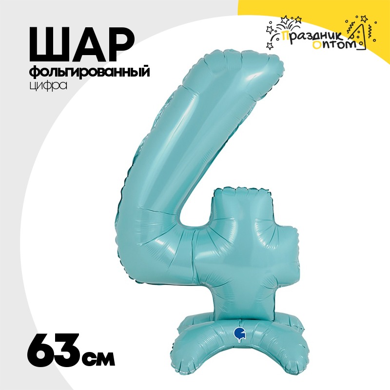 Шар фольгированный Цифра 4 63 см (Голубой)