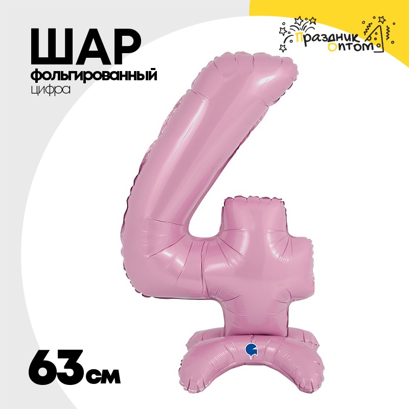 Шар фольгированный Цифра 4 63 см (Розовый)