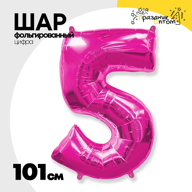 Шар фольгированный Цифра 5 101 см (Фуксия)